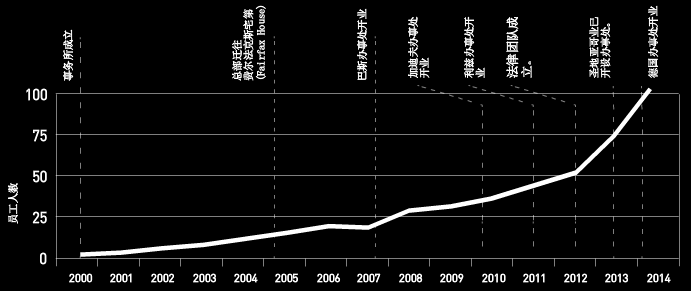 自事务所成立13年以来,凭借客户的支持,我们已经成长为一家拥有100多名员工的公司——其中45人以上为专业人员。